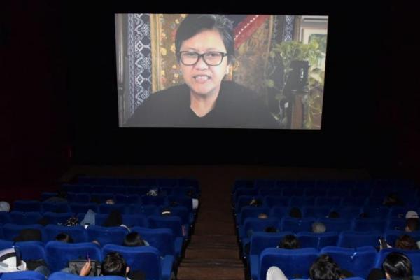 Wakil Ketua MPR RI, Lestari Moerdijat dalam penyampaian sosialisasi empat konsensus kebangsaan saat nonton bareng film berjudul Kadet 1947 di Semarang, Jawa Tengah, akhir pekan lalu.(foto: Humas MPR)