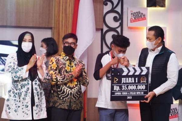 JAKARTA - Ketua MPR RI Bambang Soesatyo mengumumkan pemenang Juara 1, 2 dan 3 Ajang Karya Video 4 Pilar MPR RI.