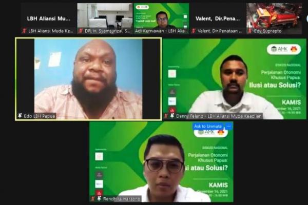 Webinar yang digelar LBH AMK bertajuk Otonomi Khusus Papua: Ilusi atau Solusi (Istimewa)