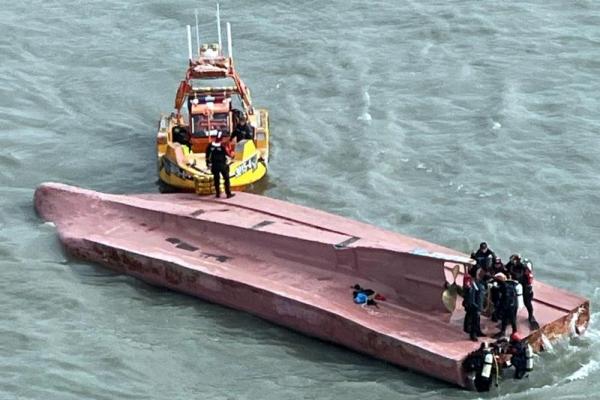 Petugas penyelamat masuk ke dalam kapal yang terbalik pada Minggu pagi dan menemukan kapten yang meninggal. Penjaga Pantai akan membawa kapal ke darat dan memulai penyelidikan penyebab pasti kecelakaan itu.