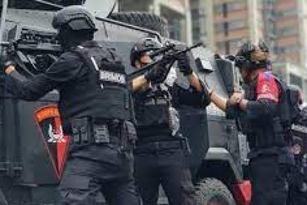 Pasukan Gegana Brimob menggelar latihan skala besar di Distrik 1 Meikarta, Cikarang. (foto: bisnis.com)