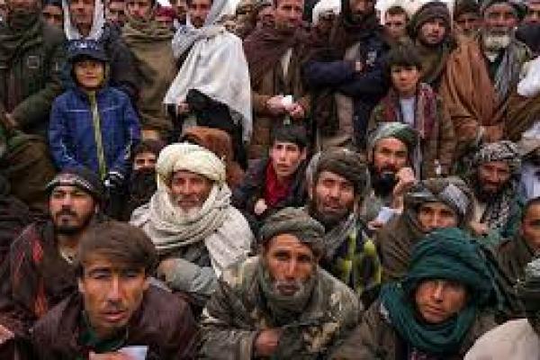 Ratusan pria Afghanistan berkumpul untuk mengajukan permohonan bantuan kemanusiaan di Qala-e-Naw, Afghanistan (Foto: AP/ aljazeera.com)