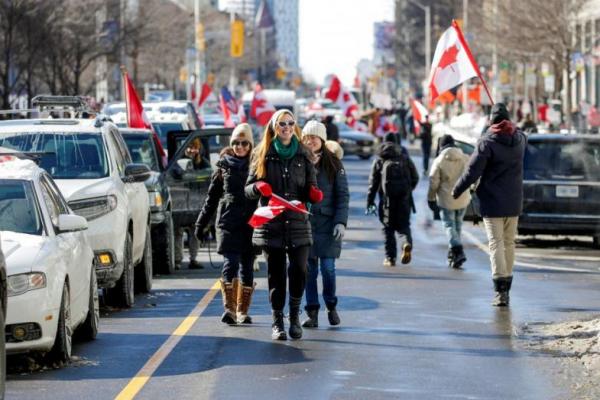 Para pengunjuk rasa mengatakan mereka damai, tetapi beberapa penduduk Ottawa mengatakan mereka diserang dan dilecehkan. Di Toronto, jalan-jalan diblokir.