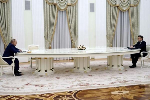 Terlihat di foto, mereka duduk masing-masing di ujung meja panjang yang berlawanan begitu lama sehingga memicu komentar satir di media sosial dan spekulasi, termasuk oleh para diplomat, bahwa Putin mungkin menggunakannya untuk mengirim pesan.