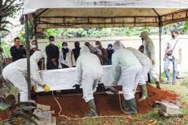 Proses pemakaman jenazah Artis Dorce Gamalama dengan protokol Covid-19 di TPU Bantar Jati, Cipayung, Jakarta Timur, Rabu (16/2/2022). (Foto: Suara.com)
