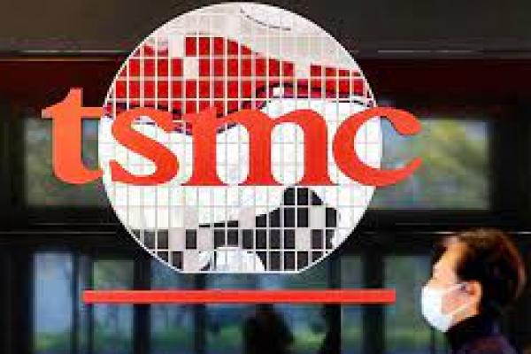 Seorang berjalan di dekat logo Taiwan Semiconductor Manufacturing Co. Ltd (TSMC) (foto:pasardana.id)