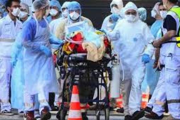 Seorang pasien Covid-19 dipindahkan para perawat di salah satu rumah sakit AS. (Foto: AFP/ beritasatu.com)