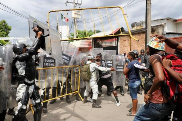 Migran, sebagian besar dari Haiti dan Afrika, telah berdemonstrasi di Tapachula, dekat perbatasan Meksiko dengan Guatemala, selama hampir sebulan, dan pada hari Selasa protes berubah menjadi kekerasan ketika mereka melemparkan batu dan bertukar pukulan dengan anggota Garda Nasional dan polisi yang dimiliterisasi.