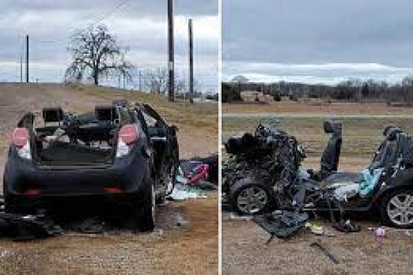 Mobil tersebut hancur total akibat tabrakan yang terjadi sekitar pukul 12.30 WIB. di Tishomingo, yang berjarak sekitar 100 mil barat daya Kota Oklahoma (foto: NewsNation/ dailymail.co.uk)