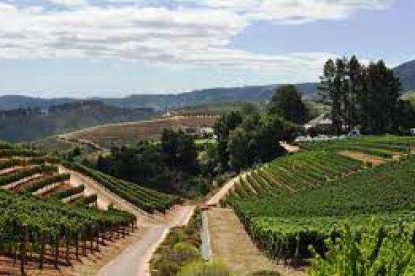 Kebun anggur di Franschhoek, kurang lebih 50 mil dari Cape Town, Afrika Selatan (foto: vbt.com)
