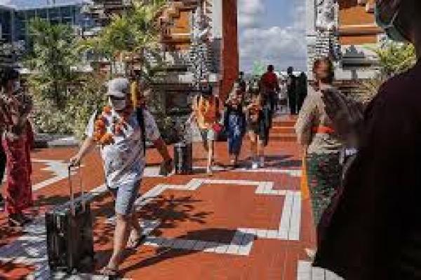 Ilustrasi. Sejumlah penumpang domestik disambut ketika tiba di Bandara I Gusti Ngurah Rai, Kuta, Bali, Jumat 31 Juli 2020.(foto: Tempo)