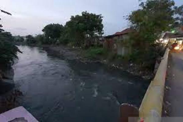 Sungai Cirarab yang melintasi Desa Pisangan Jaya, Kecamatan Sepatan, Kabupaten Tangerang, memunculkan aroma bau yang diduga berasal dari salah satu limbah pabrik oli di daerah itu. (foto: Antara)