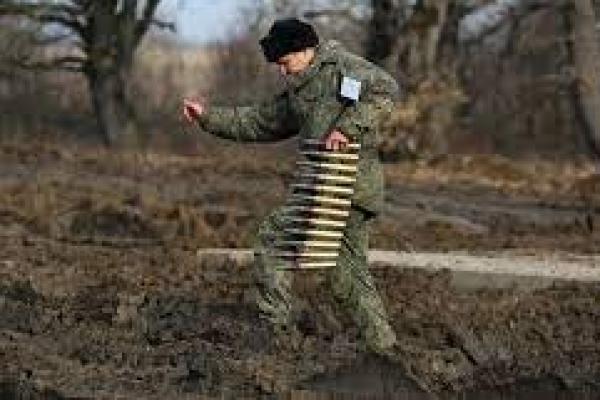 Seorang tentara Rusia membawa amunisi selama latihan militer di tempat latihan Molkino di wilayah Krasnodar, Rusia (foto: AP/ aljazeera.com]