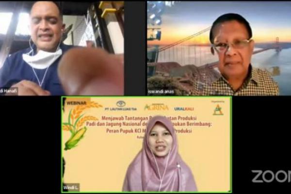 Webinar yang digelar Majalah Agrina dengan tema Menjawab Tantangan Peningkatan Produksi Padi dan Jagung Nasional dengan Pemupukan Berimbang, Rabu (26/5).