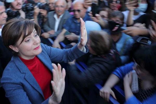 Oposisi utama Ketua CHP Istanbul, Canan Kaftancioglu menyapa para pendukungnya di Istanbul. Foto: Reuters
