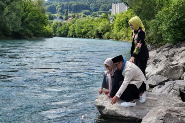 Keluarga Ridwan Kamil di Sungai Aare, Bern, Swiss, pamit kepada Eril sebelum pulang ke Indonesia. (FOTO: INSTAGRAM RIDWAN KAMIL)