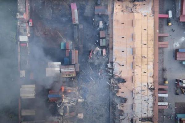 Rekaman drone menunjukkan asap dan deretan kontainer yang terbakar dari kebakaran yang dimulai Sabtu malam, memicu ledakan dan kobaran api di Sitakunda, 40 km (25 mil) dari kota pelabuhan tenggara Chittagong.
