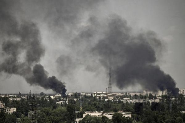 sap mengepul dari Severodonetsk selama pertempuran sengit antara pasukan Ukraina dan Rusia pada 30 Mei 2022. (foto: AFP/ france24.com)