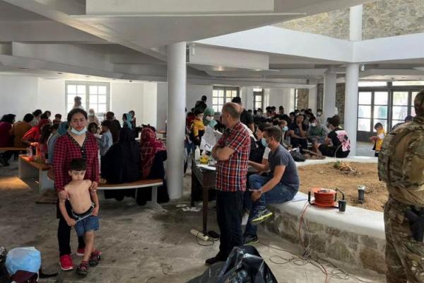 Para migran terlihat di tempat penampungan, setelah operasi penyelamatan di pulau Delos, di pulau Mykonos, Yunani, 19 Juni 2022. Foto: Reuters
