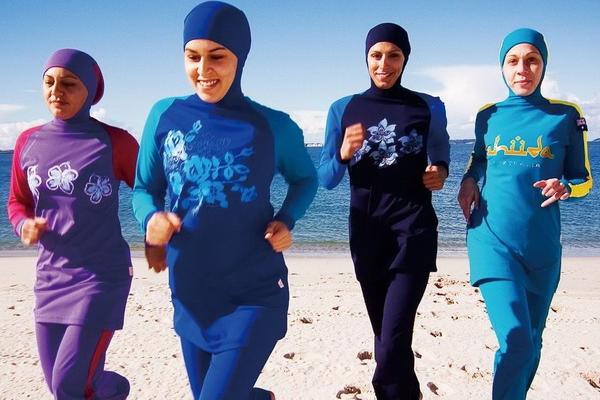 Pakaian renang burkini biasanya dipakai muslimah dengan menutupi seluruh tubuh kecuali wajah dan telapak tangan serta telapak kaki dengan maksud menyesuaikan keyakinan dengan dunia modern.