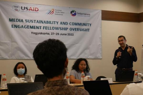 Penanggungjawab Program Internews-USAID MEDIA, Suwarjono dalam sambutannya secara virtual pada pembukaan di Yogyakarta menyebutkan dua tantangan media massa saat ini adalah menemukan model baru bisnis media digital dan mengupayakan untuk tetap bisa survive di tengah gempuran media sosial yang saat ini sangat masif dan didominasi platform global.
