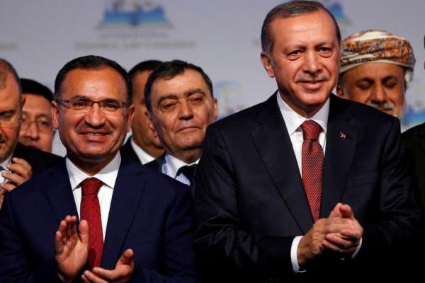 Presiden Turki Tayyip Erdogan (kanan) berfoto dengan Menteri Kehakiman Turki Bekir Bozdag. Foto: Reuters