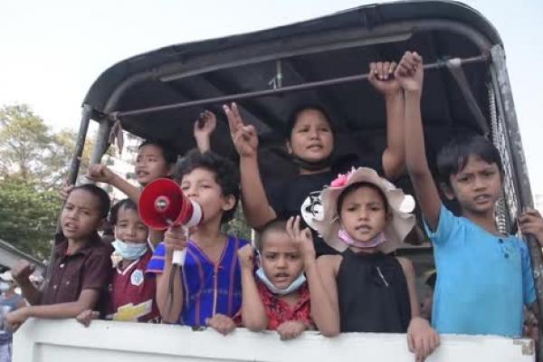 Anak-anak Myanmar bergabung dengan orang dewasa dalam memprotes kudeta militer (sumber: newsflare.com)