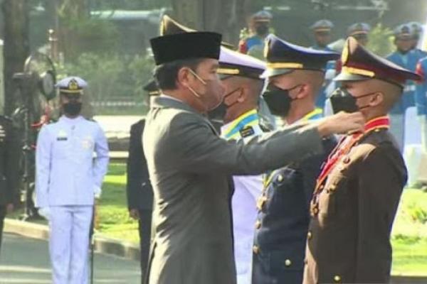 Presiden melantik 754 perwira remaja TNI dan Polri di Istana Merdeka Jakarta, Kamis (14/7/2022).