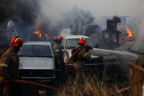 Petugas mencoba memadamkan api di Pallini, dekat Athena, Yunani 20 Juli 2022. Foto: Reuters