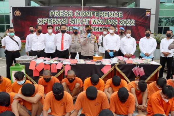 Kapolresta Tangerang Kombes Raden Romdhon Natakusuma saat merilis hasil tangkapan dalam Operasi Sikat Maung 2022 di Polresta Tangerang, Senin (25/7). (foto: Dok Humas Polda Banten./jpnn.com)