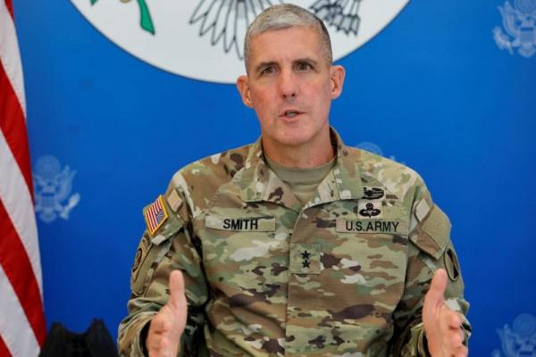Komandan Jenderal AS untuk Divisi Infanteri ke-7 Mayor Jenderal Stephen G. Smith menjelang latihan bersama Super Garuda Shield 2022, di kedutaan AS di Jakarta, 29 Juli 2022. Foto: Reuters