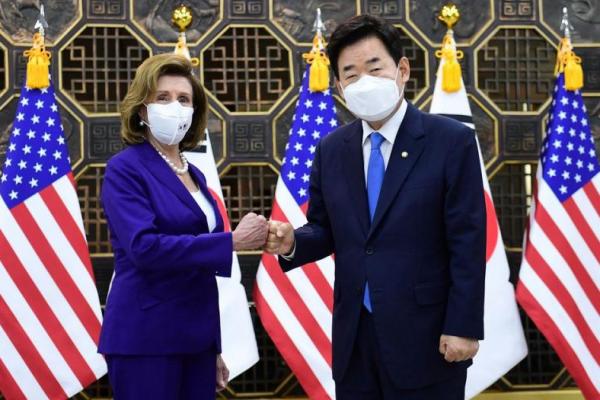 Pelosi dan rekannya dari Korea Selatan, Ketua Majelis Nasional Kim Jin-pyo, berjanji pada hari Kamis untuk mencapai denuklirisasi Korea Utara selama kunjungannya di Korea Selatan setelah mengunjungi Taiwan.