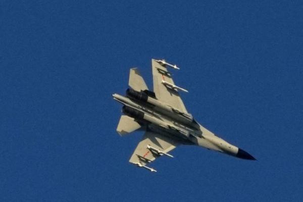 Pesawat Tentara Pembebasan Rakyat Tiongkok terbang di atas salah satu titik terdekat Tiongkok daratan ke pulau Taiwan, di pulau Pingtan, provinsi Fujian, Tiongkok 5 Agustus 2022. Foto: Reuters
