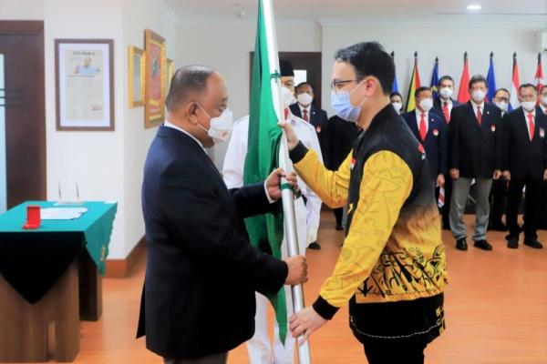 Ketua Umum (Ketum) Komite Olahraga Nasional Indonesia (KONI) Pusat Letjen TNI Purn Marciano Norman saat melantik Ketum PB PBI Dr. Jerry Sambuaga di Kantor KONI, Senayan, Jakarta, Senin (8/8).