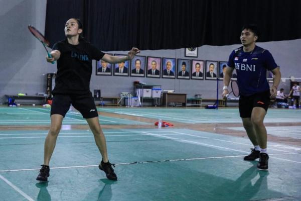 Zacha/Bela sedang berlatih di Pelatnas, Cipayung jelang Kejuaraan Dunia 2022 di Jepang. Foto: PBSI