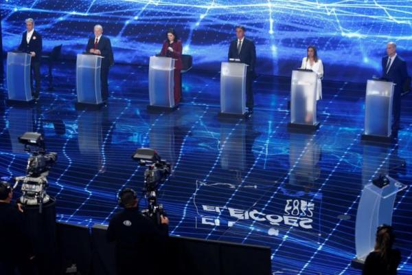 Enam kandidat presiden menghadiri debat presiden pertama menjelang pemilihan nasional, di Sao Paulo, Brasil, 28 Agustus 2022. Foto: Reuters