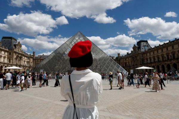 Seorang turis mengambil foto Museum Louvre di Paris, Prancis, 3 Juli 2022. Foto: Reuters