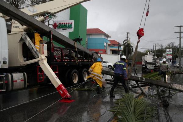 Pekerja memindahkan tiang listrik setelah Badai Fiona di Higuey, Republik Dominika, 19 September 2022. Foto: Reuters