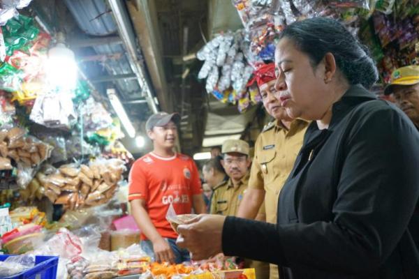 Ketua DPR RI Puan Maharani saat cek harga-harga kebutuhan pokok di Pasar Pondok Gede, Bekasi, Jawa Barat. Foto: dpr/katakini.com