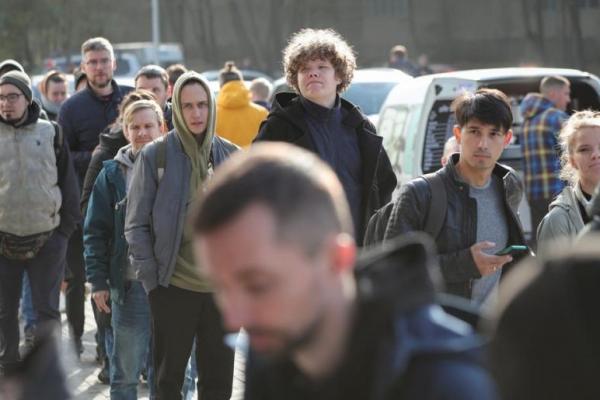 Warga Rusia mengunjungi pusat layanan publik untuk menerima nomor identifikasi individu untuk orang asing di kota Almaty, Kazakhstan, 3 Oktober 2022. Foto: Reuters