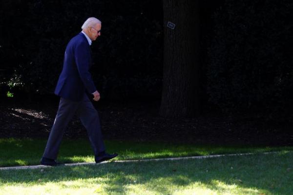 Presiden AS Joe Biden berjalan ke Ruang Oval setelah mendarat di Gedung Putih di Washington, AS, 10 Oktober 2022. Foto: Reuters