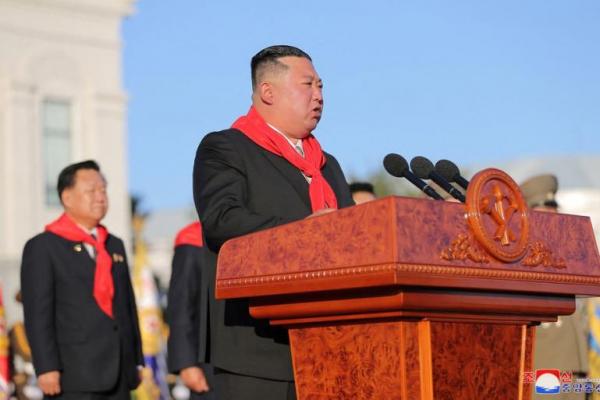 Pemimpin Korea Utara Kim Jong Un menghadiri Peringatan Pendirian ke-75 Sekolah Revolusi Mangyongdae dan Kang Pan Sok di Pyongyang, Korea Utara. Foto: KCNA via REUTERS