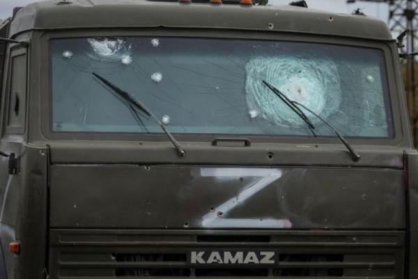 Kendaraan militer Rusia yang hancur ditandai dengan simbol Z di wilayah Kharkiv, Ukraina 13 September 2022. Foto: Reuters