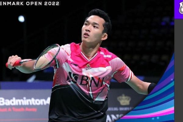 Jonatan Christie tidak berhasil lolos ke semi final final Denmark Open 2022 setelah kalah oleh wakil Malaysia unggulan keempat Lee Zii Jia pada pertandingan Jumat petang waktu Odense.(foto: instagram @badminton.ina))