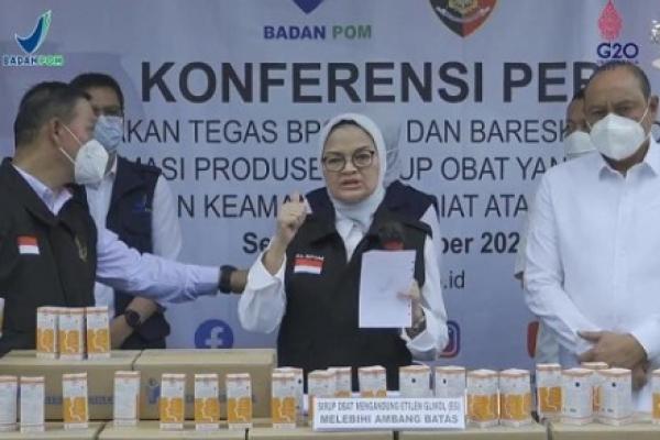 Kepala BPOM Penny K. Lukito mengatakan kepada wartawan bahwa izin produksi "cairan oral" dari dua perusahaan tersebut telah dicabut, sambil menambahkan bahwa BPOM sedang mengupayakan gugatan kriminal terhadap mereka.