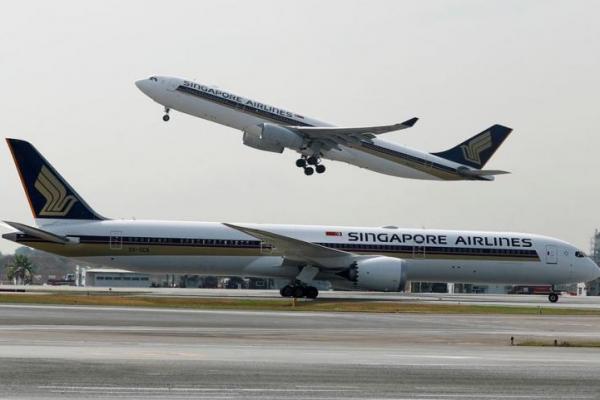 Pesawat Airbus A330-300 Singapore Airlines lepas landas di Bandara Changi di Singapura 28 Maret 2018. Foto: Reuters
