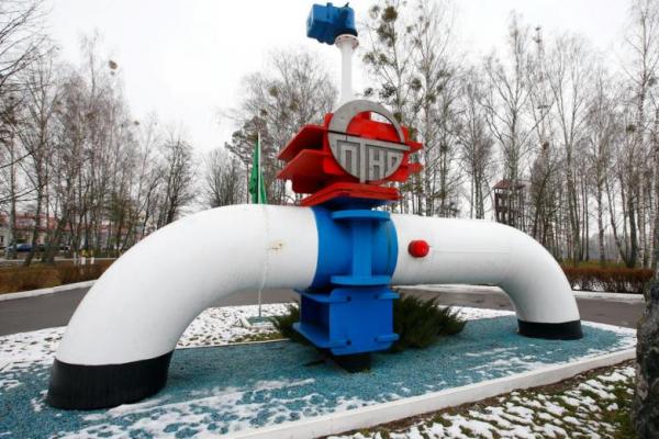 Model jalur pipa di pintu masuk utama stasiun pompa minyak Gomel Transneft dekat Mozyr, Belarusia, 4 Januari 2020. Foto: Reuters