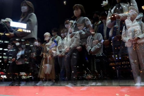 Orang-orang berkabung di peringatan tragedi Halloween, di Seoul City Hall Plaza di Seoul, Korea Selatan, 3 November 2022. Foto: Reuters
