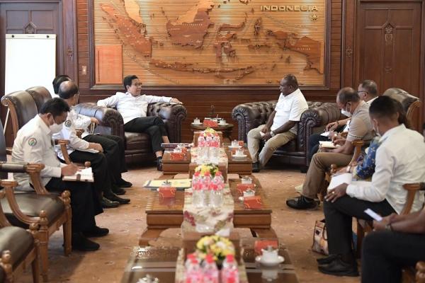 Mendes PDTT Abdul Halim Iskandar menerima Audiensi Bupati Merauke Romanus Mbaraka (Humas Kemendes)