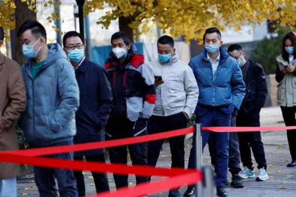 Orang-orang mengantre untuk menjalani tes Covid di Central Business District Chaoyang, Beijing, China 15 November 2022. Foto: Reuters